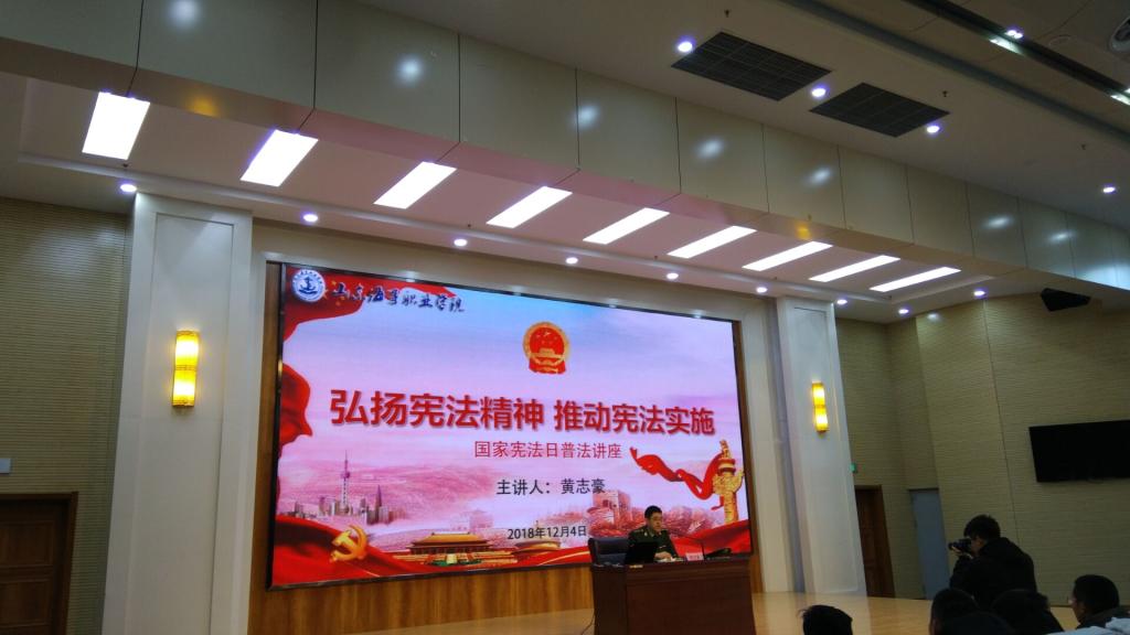 12月4日是全国人大常委会确定的国家宪法日,是我国第五个国家宪法日。为大力弘扬宪法精神、全面推进依法行政、加快建设法治统计,增强同学们的法治观念,推动全社会树立宪法意识,让同学们能够知法懂法,学会利用法律进行自我保护,山东海事职业学院于2018年12月4日北京时间下午三点半在图书馆报告厅举办了以“弘扬宪法精神,推动宪法实施”为主题的普法讲座。