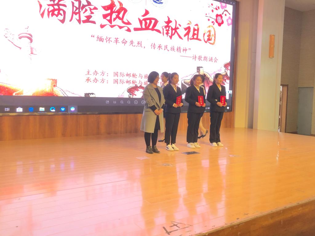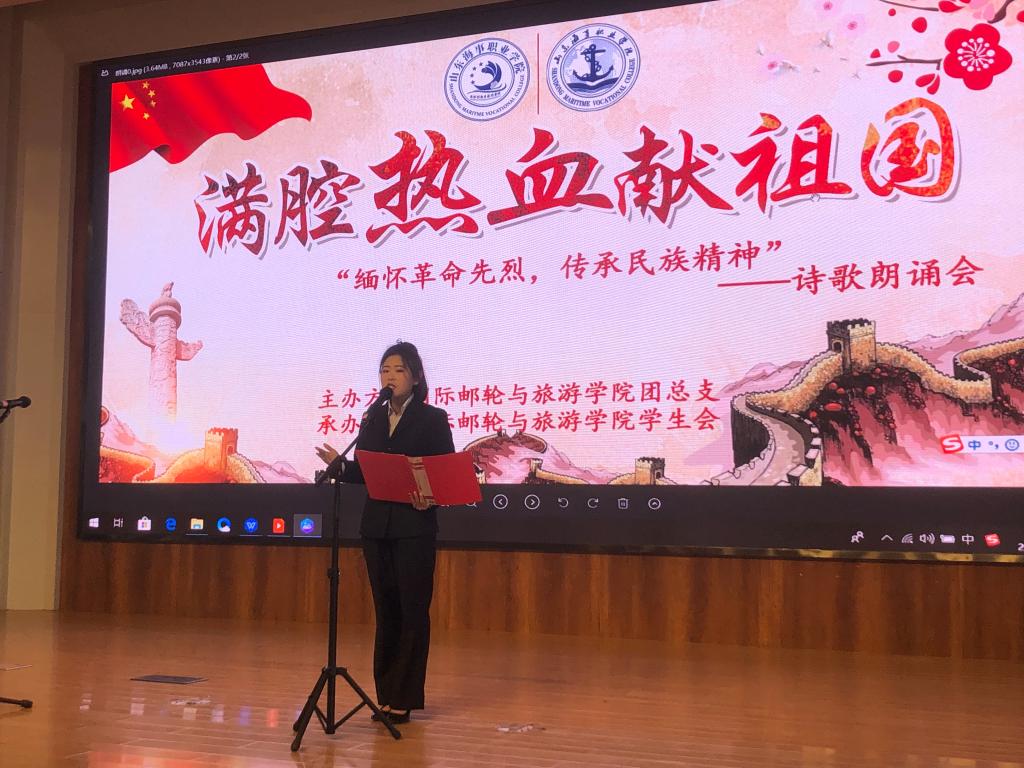 为缅怀革命先烈,继承革命先烈的光荣传统,弘扬爱国主义精神,发扬先烈遗志。国际邮轮与旅游学院于4月3日下午1点30分在图书馆报告厅举办了以“缅怀革命先烈,传承民族精神”为主题的诗歌朗诵会,参与人员为国际邮轮与旅游学院全体师生。