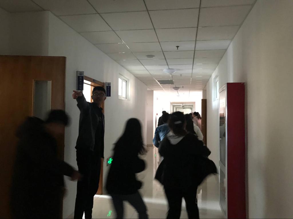 演练开始前,崔主任给学生介绍了简单的逃生注意事项和方法。1点30分,随着铃声响起,全系同学在老师的指引下,捂住口鼻,弯着身体快速有序地按照既定的逃生路线撤离到教学楼外,从警报声响起到最后一名学生撤离到楼下,仅用时2分钟。