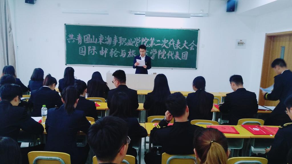 2018年11月30日山东海事职业学院国际邮轮与旅游学院共青团代表大会第一次分会场在3309教室正式举行。这是全院团员青年政治生活中的一件大事,是我院团学工作迈向更高起点的又一次重大转折。