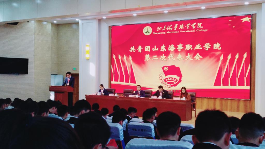 共青团山东海事职业学院第二届代表大会在12月1日隆重召开,本次代表大会在图书馆报告厅举行。