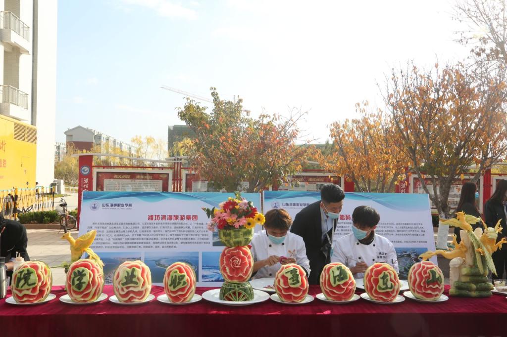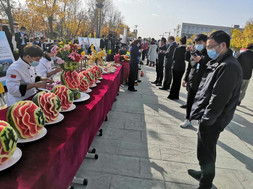 在启动仪式现场,学院通过教育成果看板展览、播放学院宣传片、发放宣传材料、开展咨询服务等形式,面向市民详细推介了学院的办学特色、教学成果及育人成效,全面展示了近年来我院教育改革发展在推动产业及区域经济发展、助力新旧动能转换中发挥的重要作用。各专业学生充分展现所学专业技能,进行了咖啡制作、烹调雕刻等职业技能展演,学生精湛的技能和蓬勃向上的风貌,生动体现了学院在技术技能人才培养上所取得的丰硕成果。