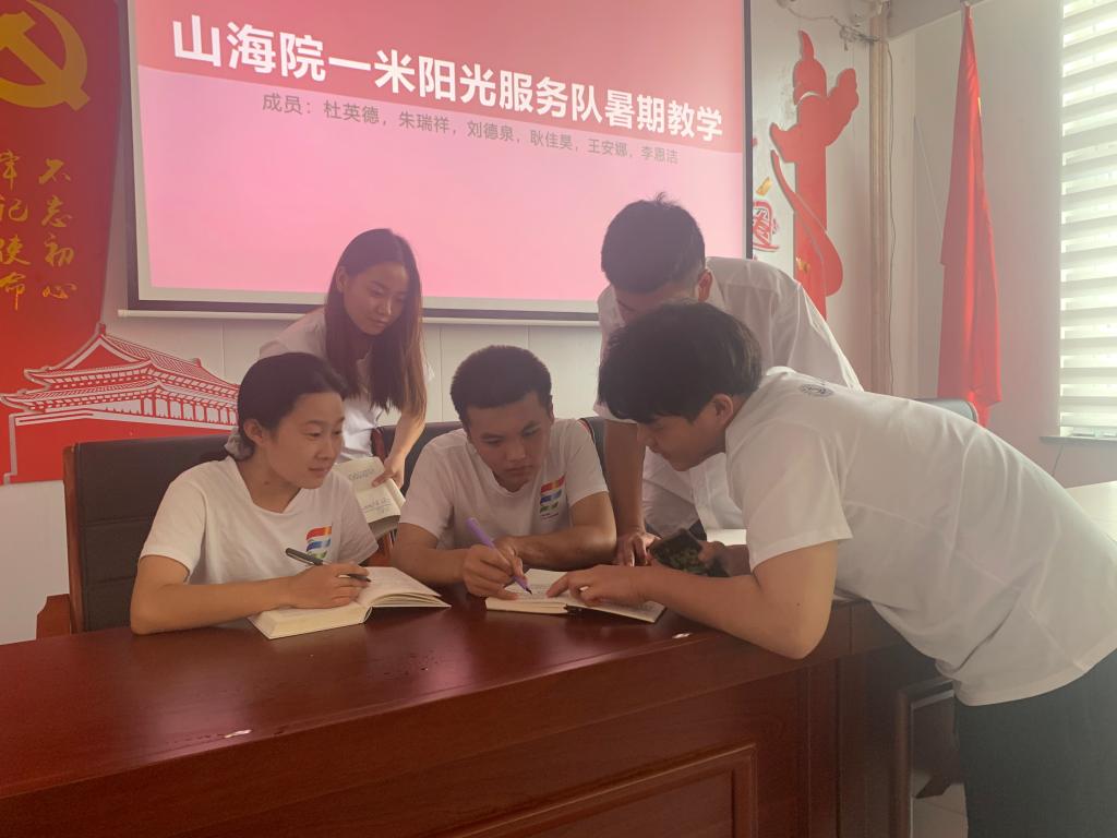 为了让祖国的花朵建立实现中国梦的伟大梦想,山东海事职业学院“一米阳光”志愿服务队在山东省临沂市平邑县柘沟村进行支教活动,在支教过程中,志愿者们积极备课,认真给学生们上好每一节课,让他们在一天的学习中有所收获。每个志愿者根据自己的特长和能力进行不同的科目教学。