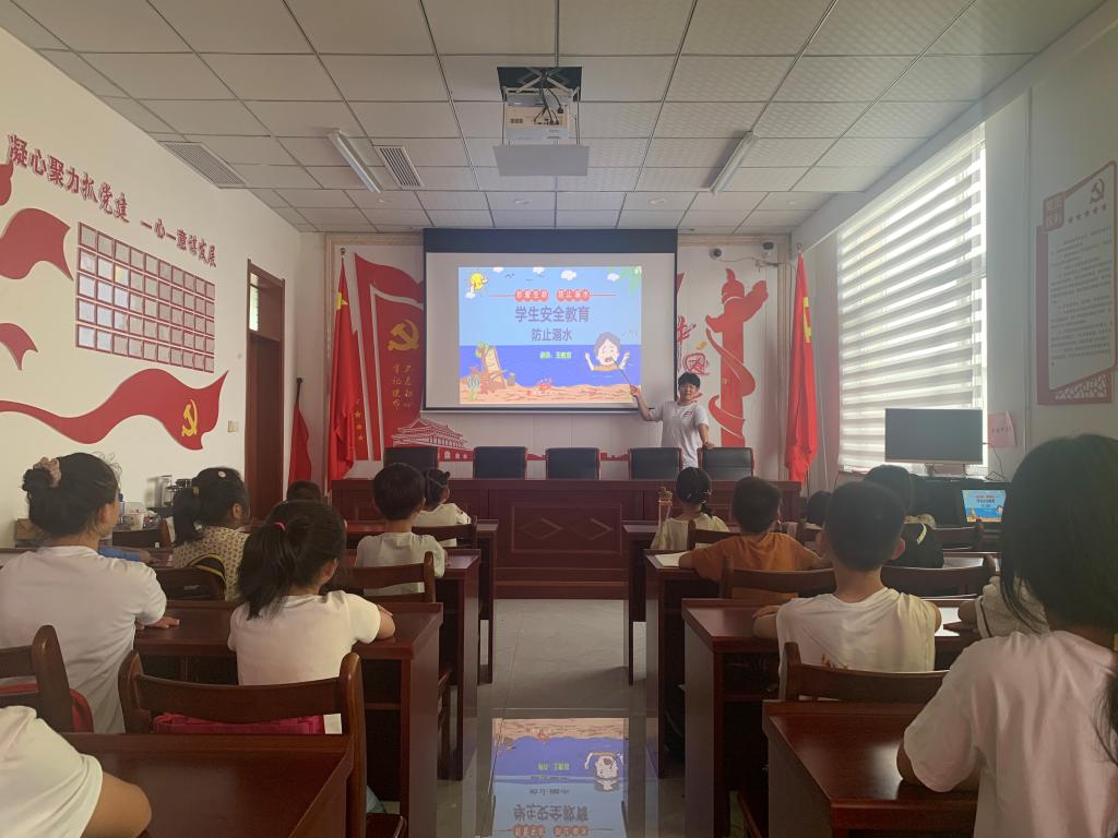 图为志愿者耿佳昊在给同学们讲解防溺水安全知识。中国青年通讯员杜英德摄。