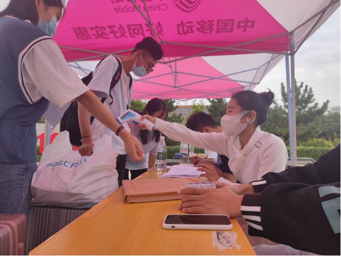 返校当天,学院细致安排各个环节,相继成立师生迎接组、现场报到组、后勤保障组、志愿者工作组、学生干部先锋岗。早上8点,负责引导学生返校的师生工作人员已全部就位,核验身份、测量体温、出示健康码、行李消杀、信息登记......每个检验环节有条不紊,学生陆续到达,安静等待,有序检测,各个环节衔接流畅。