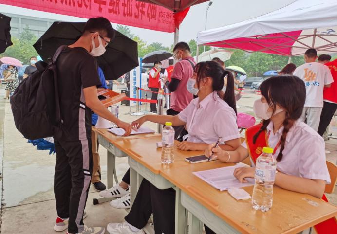 迎新过程中,纷纷扬扬的细雨不断落下,雨水逐渐的打湿了地面,院领导和各教学组老师以及新生辅导员,更是以身作则亲临服务台协调新生的接待工作,勉励新生入学后用自己的努力回报家长和社会。