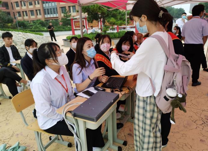 院学生会成员成立了“迎新生志愿服务队”,用学哥学姐的热情、志愿者的爱心,去欢迎每一位山海院学子的到来,从登记处再到注册处,再到寝室,到处都他们忙碌的身影。