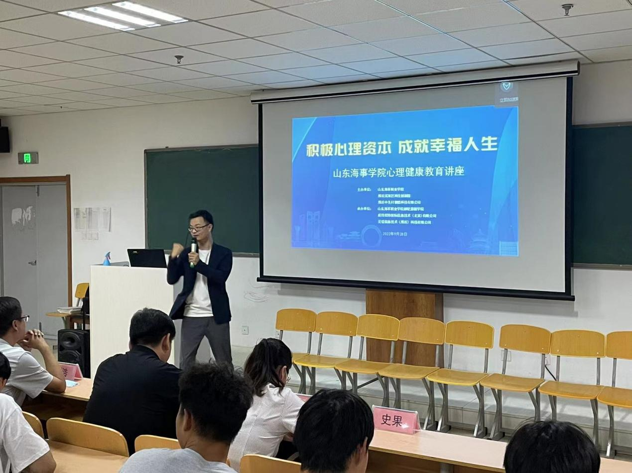 为加强大学生心理健康教育,营造温馨舒适有温度的学习环境,邮轮游艇学院于2022年9月28日邀请威特瑞特国际信息技术(北京)有限公司首席心理培训讲师-史果走进校园,为全院师生带来了题为《积极心理资本成就幸福人生》的主题讲座。山东海事职业学院副校长宋志刚、潍坊中关村智酷总经理刘浩、滨海科技创新园招商和对外联络部主办王静静、潍坊中关村智酷产业招商总监袁可、潍坊中关村智酷品牌宣传经理孔波、山东海事职业学院邮轮游艇学院院长助理弭剑波出席了本次活动。