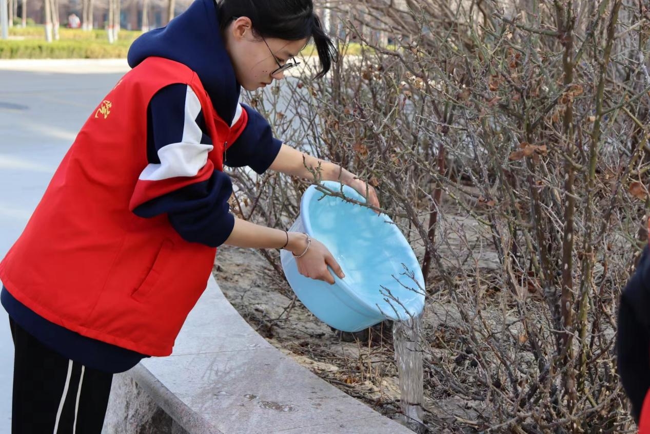 在老师们的带领下,学生们热火朝天的投入到活动当中去。满怀着对绿色生命的渴盼与尊重,用行动践行建设绿色美丽校园的初心。清洁花坛、修剪树枝、浇水,道道工序学生们都做的认真、仔细,为春天增添了更多的生命活力。通过此次活动,学生们上了一堂生动的劳动教育课,身心得到了一次升华。