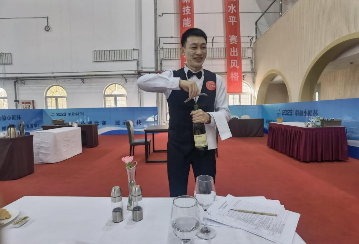 本次比赛是全国首个针对国际邮轮乘务管理专业的全国性行业大赛。比赛内容涵盖邮轮运营理论考试、邮轮客舱服务和邮轮餐饮服务三个模块。在邮轮餐饮服务模块,选手们需要展示摆台、点菜、清洁等技能,并使用流利的英语与宾客进行交流,妥善处理服务过程中出现的突发事件。