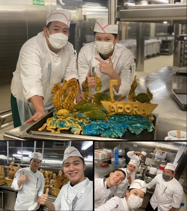 我院2021级烹饪工艺与营养专业学生李家乐经过严格选拔,荣幸地成为首批通过面试登上“爱达•魔都号”的工作人员,负责首艘国产邮轮的面包烘焙岗位工作。